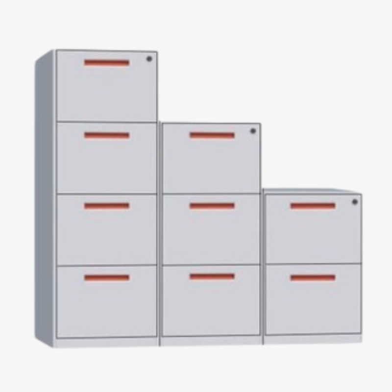 Modular steel filing cabinet series with 2, 3, or 4 drawers, designed for A4/F4 files and flexible office layouts.