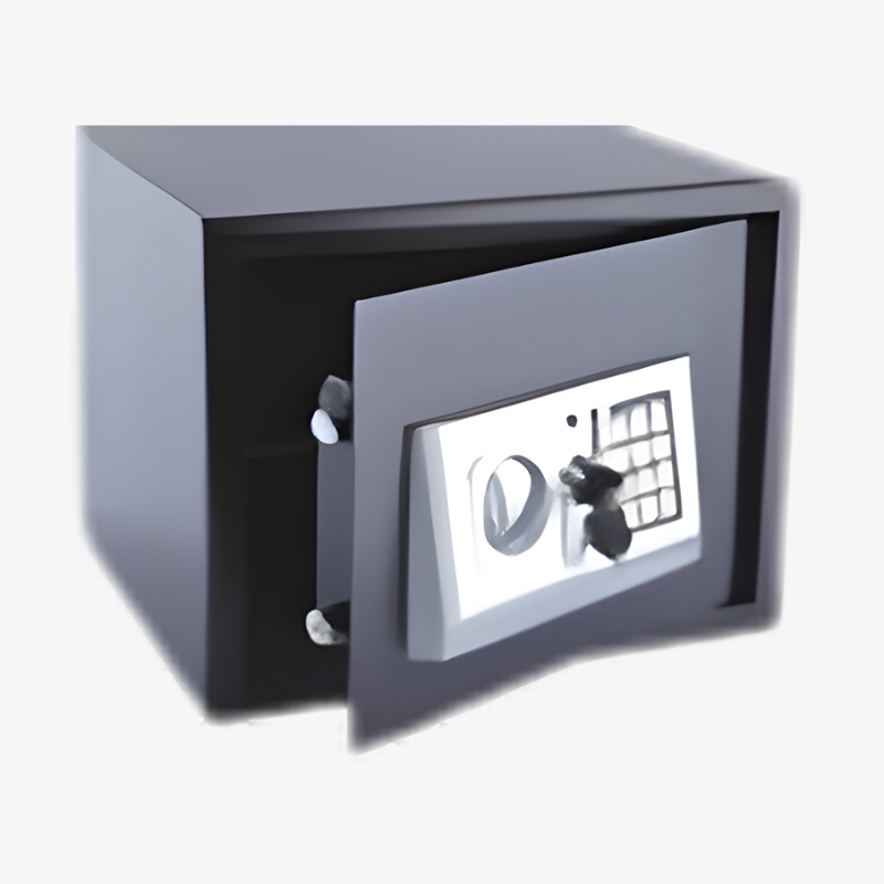 Compact digital security safe for cash, documents, and valuables, ideal for homes, hotels, and offices.