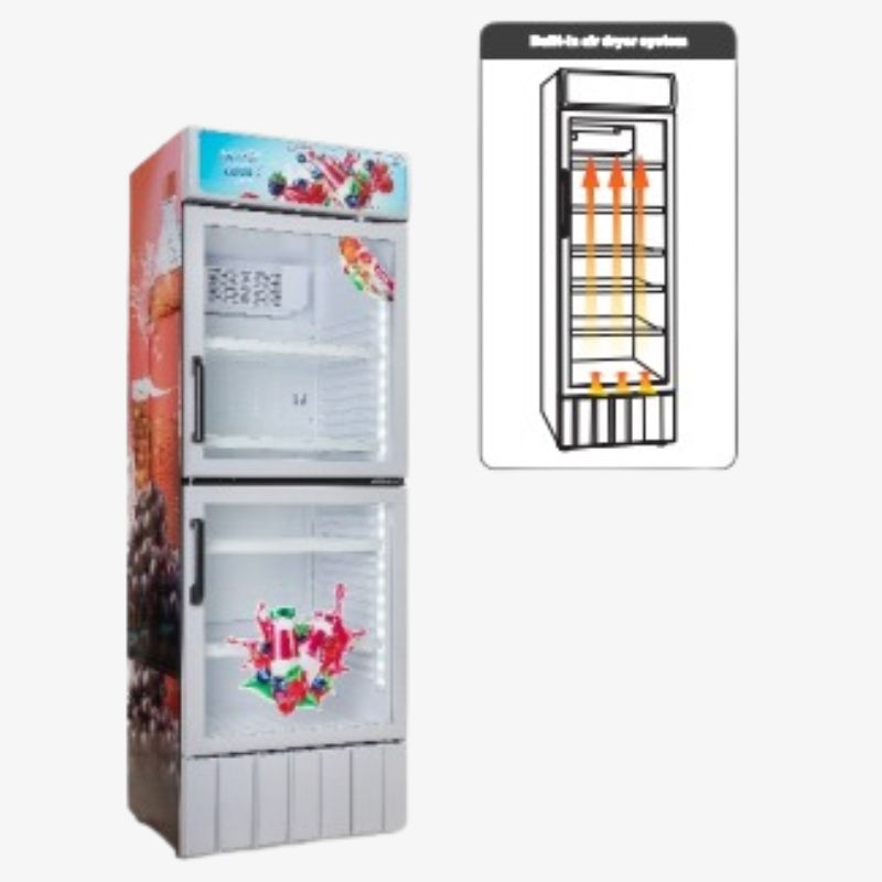 - Transparent glass doors for clear product display
